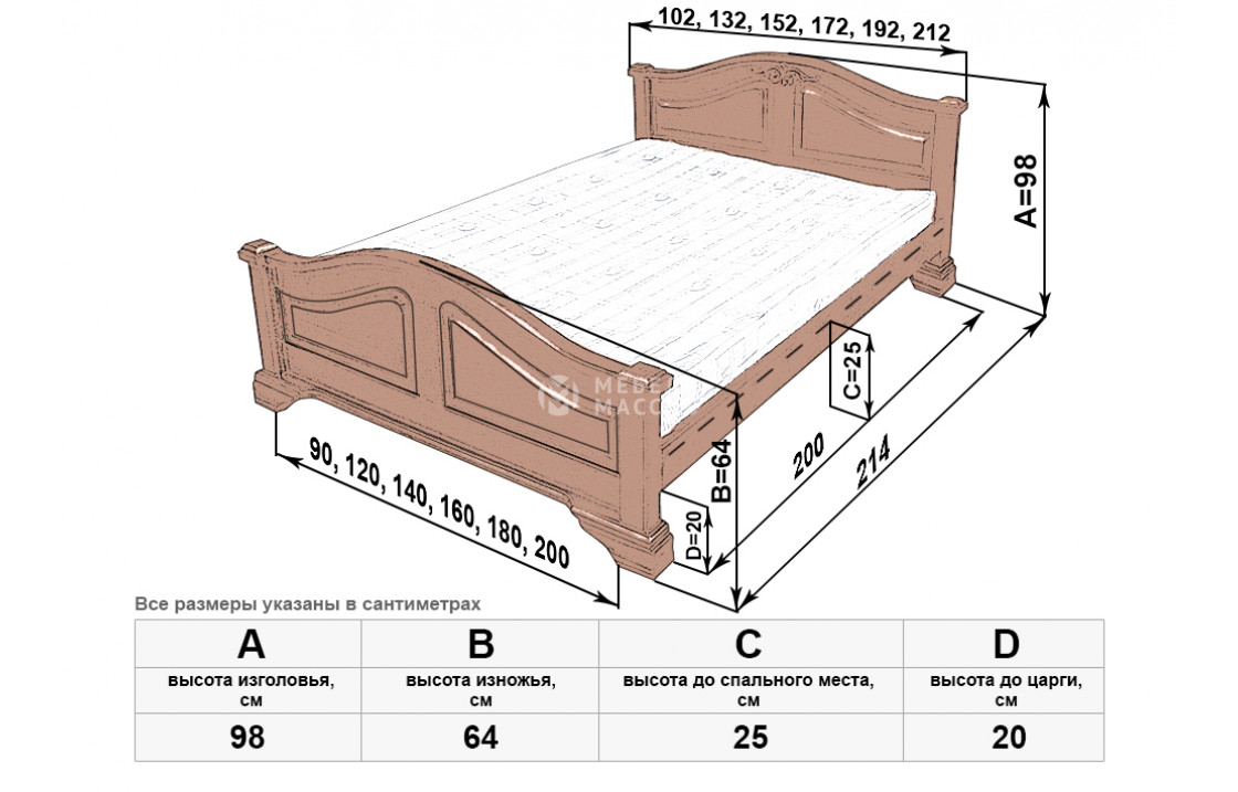 Королевская кровать Европа мод 1 изготовлена из натурального древесного массива. Модель имеет прочную конструкцию и благородный вид. Изделие, которое можно купить по выгодной цене в нашем интернет-магазине, отличается сплошными симметричными волнообразными спинками, переходящими в устойчивые ножки. Осуществляется доставка на дом по Твери и Тверской области.| Размер | Цена | |