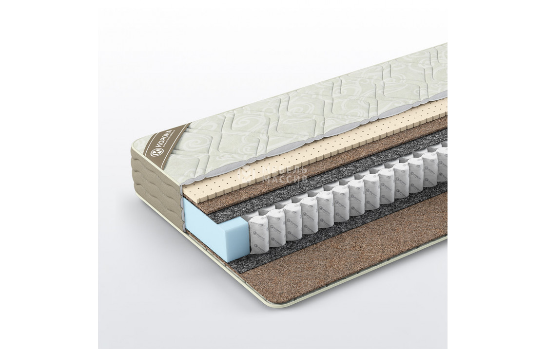 6. Кокосовая койра 10 мм ? Кокос - переплетенные волокна кокосового ореха, растительного происхождения. Исключительные свойства кокоса в прочности, упругости и гигиеничности. Материал придает жесткости матрасу. Обладает отличной вентилируемостью, устойчив к любой влажности и перепадам температуры, гипоаллергенный и долговечный.