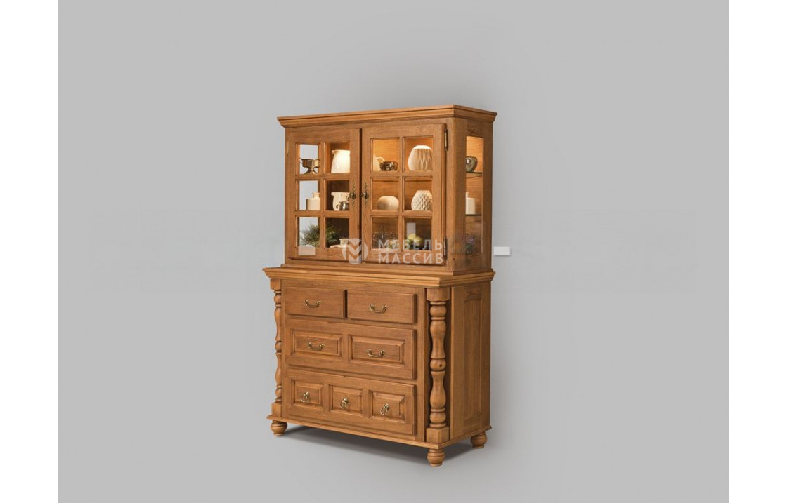 Сервант Ретро 4 с двумя створками – модель средних размеров с характерным для своей коллекции дизайном. Изделие подойдет для хранения посуды, предметов декора и прочих вещей на кухне, в столовой или гостиной. Конструкция серванта разделена на две части: вверху находится витрина с полками, а в нижней части расположены выдвижные ящики на направляющих. Материал изготовления в виде дерева и фурнитура отвечают европейскому качеству мебельного производства, что обеспечит продолжительную эксплуатацию без износа основных узлов. Доставка по Твери и Тверской области.| Размер | Цена | |