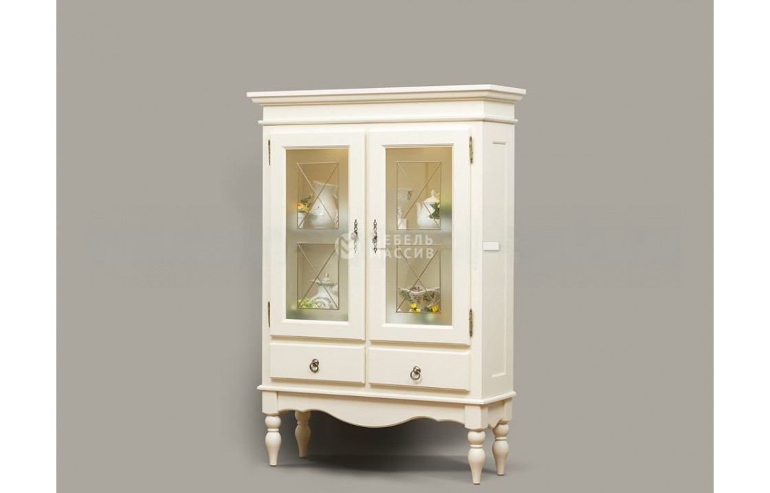 Винтаж 10 – небольшой сервант для хранения различных вещей, в том числе сувениров и элементов декора. Данная модель принадлежит к линейке классических предметов мебели, созданных из натуральной древесины. Основным элементом дизайна изделия являются стеклянные вставки на фасадах створок, исполненные из прозрачного и матового стекла. За ними располагаются полки, где и можно будет хранить предметы. Дополнительно сервант оборудован двумя маленькими выдвижными ящиками на направляющих. Удерживают всю конструкцию изящные резные ножки и основание изогнутой формы. Доставка по Твери и Тверской области.| Размер | Цена | |