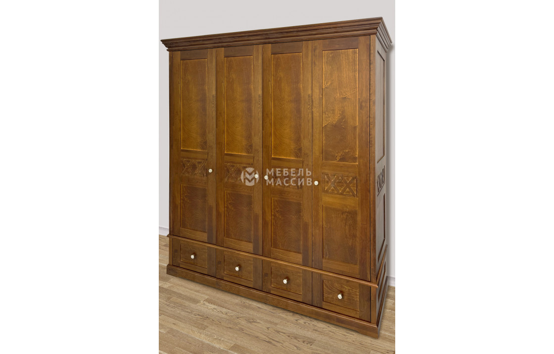 Шкаф Дубрава с четырьмя створками – вместительная модель с традиционным дизайном. Он отличается высоким качеством материалов и сборки. Внутреннее наполнение здесь представлено отсеком с перекладиной для вешалок с верхней одеждой, несколькими полками и выдвижными шкафами. Задняя стенка усилена вставкой, что повышает общую надежность. Широкий ассортимент цветов и множество вариантов фурнитуры позволят выбрать шкаф под определенный интерьер, также оттенки подчеркнут природную красоту древесной текстуры. Доставка по Твери и Тверской области.| Размер | Цена | |