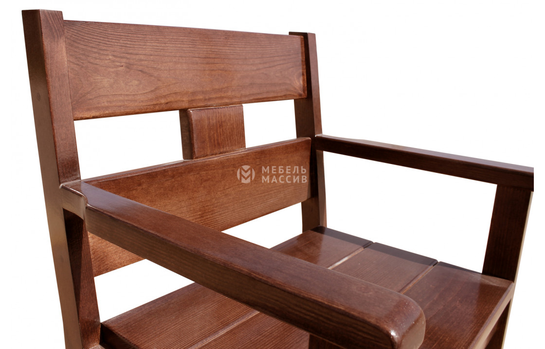 Кресло Русич из массива натурального дерева. Товар представлен в четырёх вариантах исполнения из древесины на выбор: сосна, берёза, бук или дуб. Широкий выбор вариантов покраски позволяет органично вписаться в любой интерьер. Отличается износостойкостью, надёжностью, лаконичным дизайном. Купите изделие по специальной цене с доставкой на дом в интернет-магазине «Мебель Массив». Доставка по Твери и Тверской области.Рейтинг